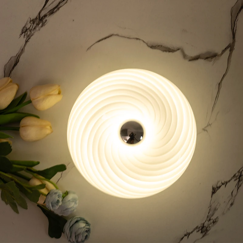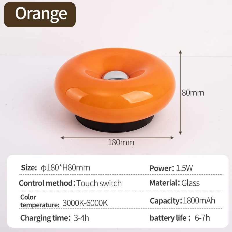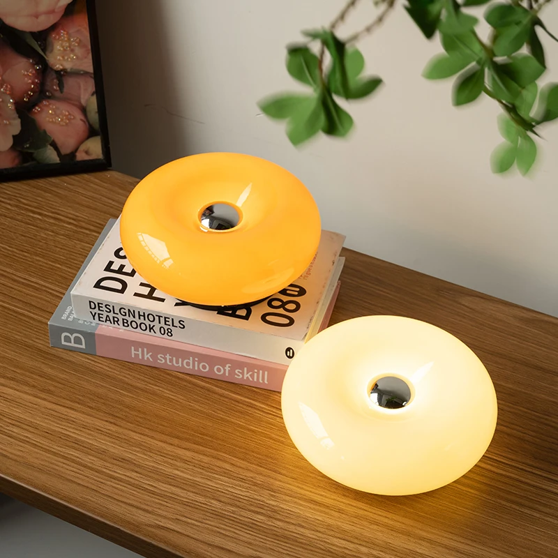 High-End Creative Bedhead Night Lamp Cordless Indoor Desk Lamp with Battery Power Donut Wall Glass Atmosphere Lamp